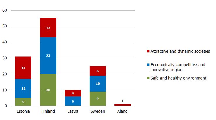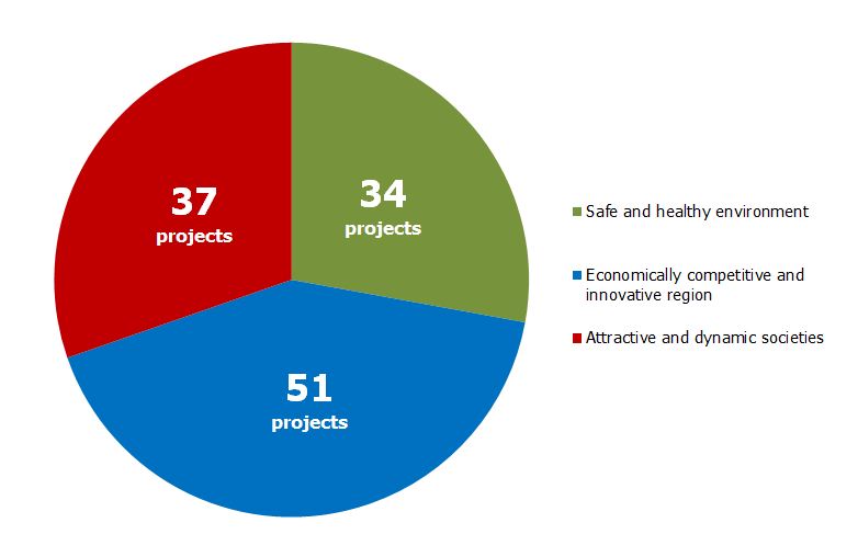 This is how the 122 projects are divided between the three programme priorities (no of projects):