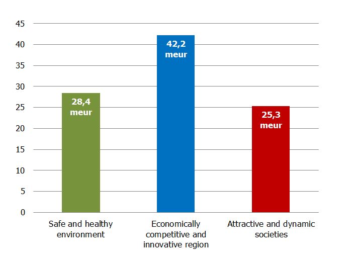 In the following graph you see how the 96 million euros was allocated between the programme priorities: